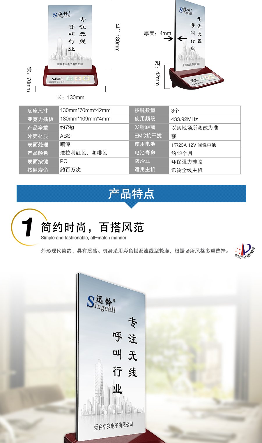 作用用途:餐廳等場(chǎng)所顧客呼叫服務(wù)人員的發(fā)射端