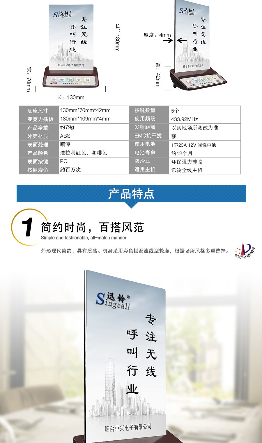 作用用途:餐廳等場(chǎng)所顧客呼叫服務(wù)人員的發(fā)射端