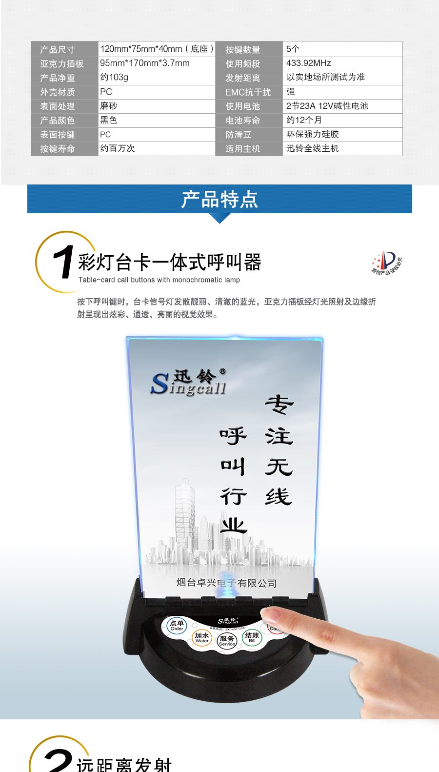作用用途:美容院足浴等場所顧客呼叫服務(wù)人員的發(fā)射端
