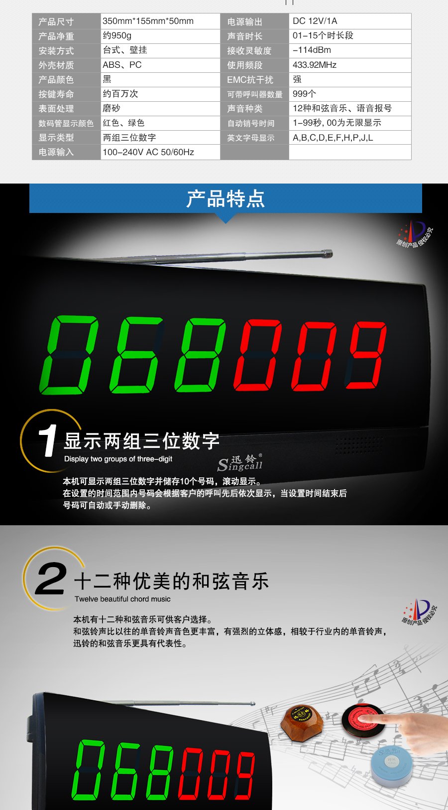 作用用途:西餐廳等場所服務人員接收顧客呼叫信息的接收端