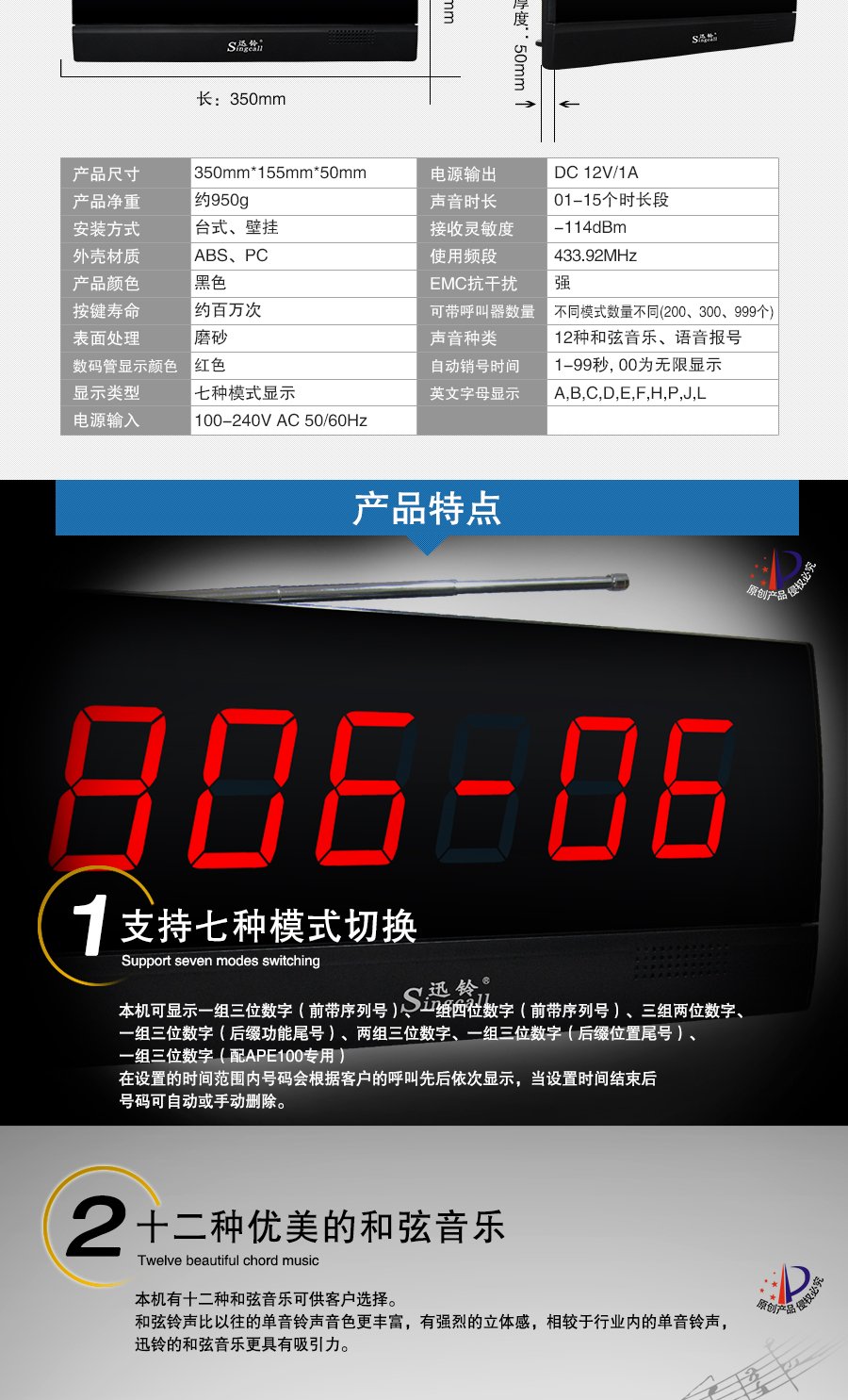 作用用途:美容院等場所服務(wù)人員接收顧客呼叫信息的接收端