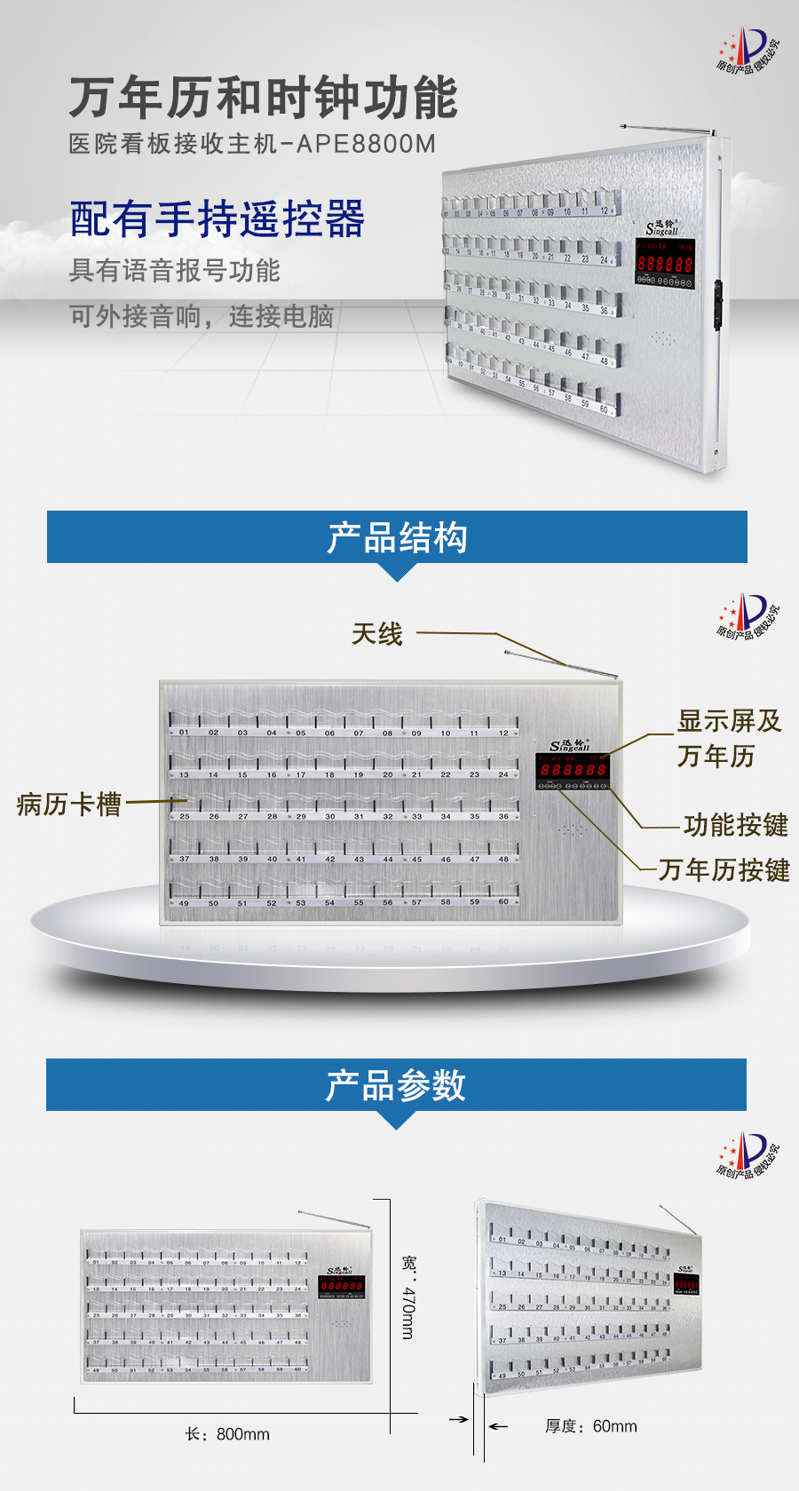 作用用途:醫(yī)院病房等場所護(hù)理人員接收病患呼叫信息的接收端