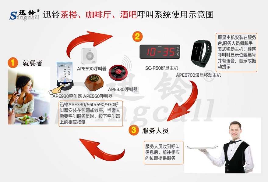迅鈴茶樓、咖啡廳、酒吧無(wú)線呼叫系統(tǒng)解決方案