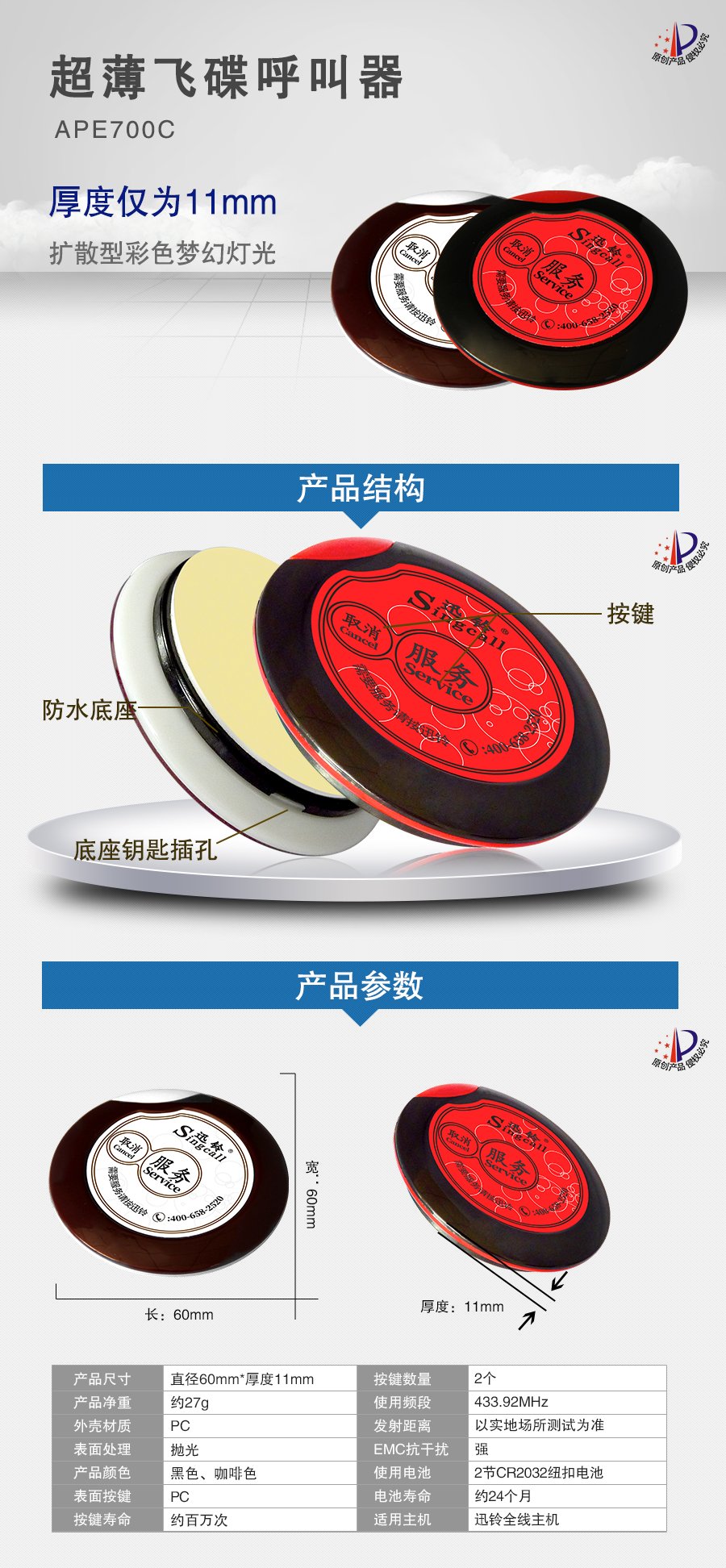 作用用途:咖啡廳、茶樓、網(wǎng)吧等場(chǎng)所顧客呼叫服務(wù)人員的發(fā)射端