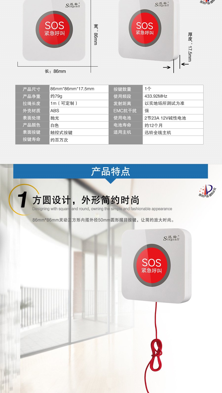 作用用途:醫(yī)院/診所等場(chǎng)所病患呼叫醫(yī)護(hù)人員的發(fā)射端