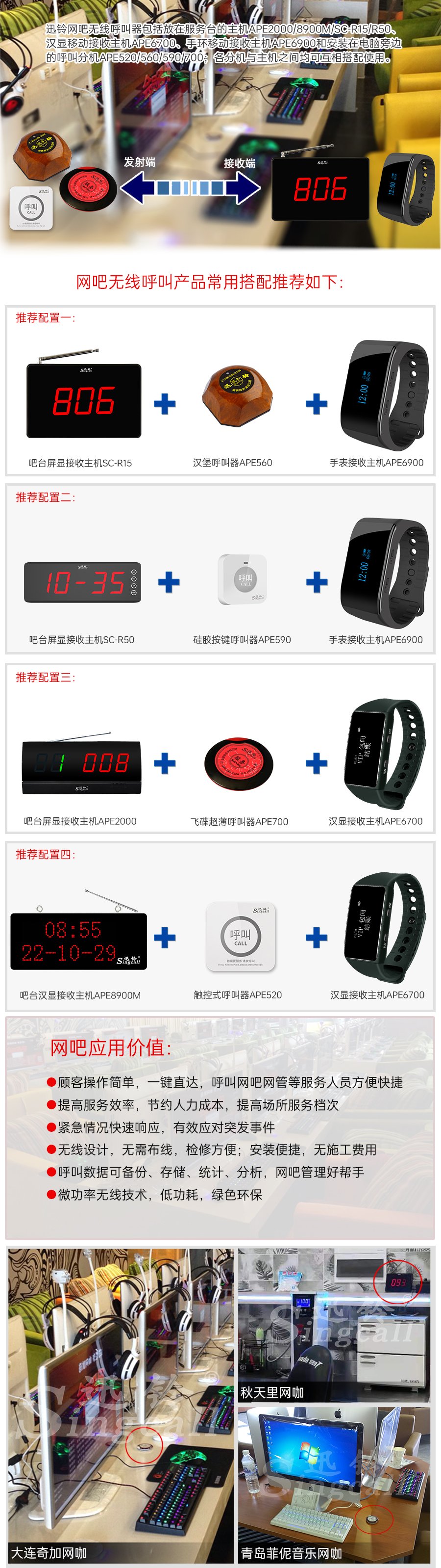 產(chǎn)品型號(hào):產(chǎn)品組成:網(wǎng)吧接收主機(jī)(接收器)+網(wǎng)吧無(wú)線呼叫器分機(jī)(發(fā)射器)
