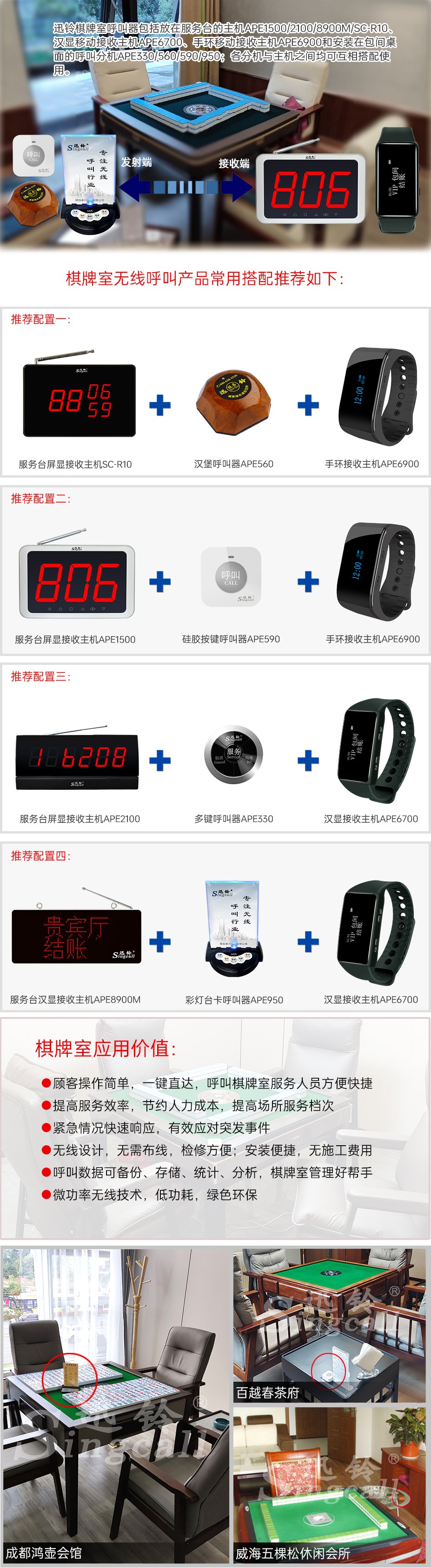 作用用途:棋牌室顧客一鍵呼叫服務(wù)人員提供茶水、結(jié)賬等服務(wù)