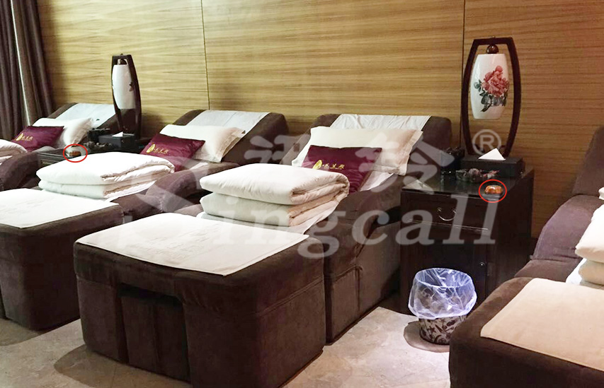 貴陽叁H養(yǎng)生殿坐落在美麗的貴州省,集足療、養(yǎng)生、棋牌為一體,整潔大方、品質(zhì)放心,其以專業(yè)的技能、精致的服務行走在領域的前端,成為行業(yè)中的佼佼者,但叁H并沒有停下腳步,為了方便顧客享受服務,讓殿內(nèi)檔次更上一層樓,公司決定與迅鈴聯(lián)手,打造一個無線系統(tǒng)覆蓋的現(xiàn)代化養(yǎng)生殿。結(jié)合殿內(nèi)典雅大方、古香古色的內(nèi)部裝飾,我們?yōu)槠渫扑]了木紋色的APE560,安裝在足療床、推拿床等設備旁邊,同時具備語音報號功能的主機APE1500安裝在服務臺,當客人有服務需求的時候,只需輕輕按下手邊的呼叫器,服務人員便能快速接到信息,快速準確的提供服務,讓客人在享受身體放松帶來的舒適感時,也盡享心情舒暢的愉悅。