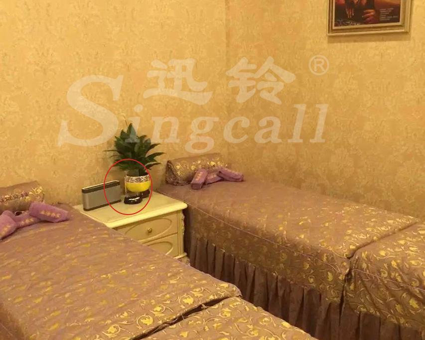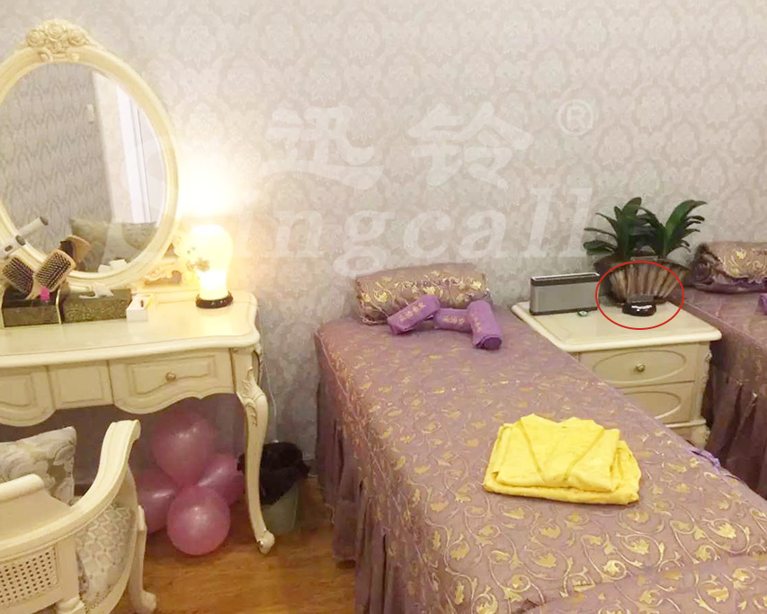 具體應(yīng)用:APE930彩燈臺卡呼叫器配備在按摩床一旁,當(dāng)顧客按下按鍵,帶廣告宣傳功能的水晶插板會發(fā)散出炫彩、夢幻的藍(lán)色燈光,美輪美奐。同時,簡約、時尚的屏顯小主機(jī)SC-R15安裝在吧臺,當(dāng)客人有服務(wù)需求按下呼叫器時,吧臺服務(wù)人員便可快速通過主機(jī)接收到信息,準(zhǔn)確、快速的為顧客提供服務(wù),讓顧客在接受健康、專業(yè)的服務(wù)時 ,也盡享放松、舒適的休閑環(huán)境。