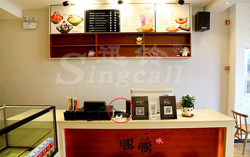 膨膨冰旗下48家加盟店共安裝SC-T180發(fā)射器48臺,SC-R180飛盤接收器520個。迅鈴無線取餐器的使用,改變了傳統(tǒng)的等待方式,當顧客點好餐后不用排隊等待,只需要接過前臺服務人員遞給的SC-R180小飛盤,找個座位靜靜地享受這愜意的時光即可。當餐點準備完成,服務人員按下SC-T180主機上對應的飛盤號碼,顧客手中的小飛盤就會發(fā)出閃爍、震動或滴滴聲提醒客人去領取自己的餐點。顧客到服務臺取走餐點的同時將取餐器交還給服務人員,整個過程使顧客享受的不僅僅是一份甜品,更是一種時尚、浪漫、優(yōu)雅的生活方式。