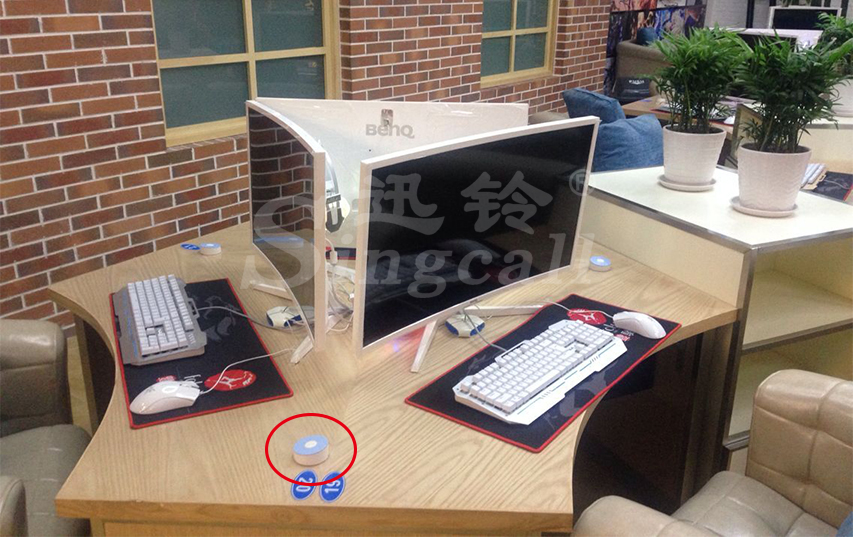 應(yīng)用方案:小巧輕薄的APE700安裝在每臺(tái)電腦顯示屏下方,當(dāng)顧客在上網(wǎng)過(guò)程中有任何需要,都可以按下手邊的呼叫器,吧臺(tái)處服務(wù)人員通過(guò)隨身佩戴的APE6800接收呼叫信息,大屏漢顯屏幕準(zhǔn)確顯示呼叫座位號(hào),以震動(dòng)等方式提醒服務(wù)人員前去服務(wù)。