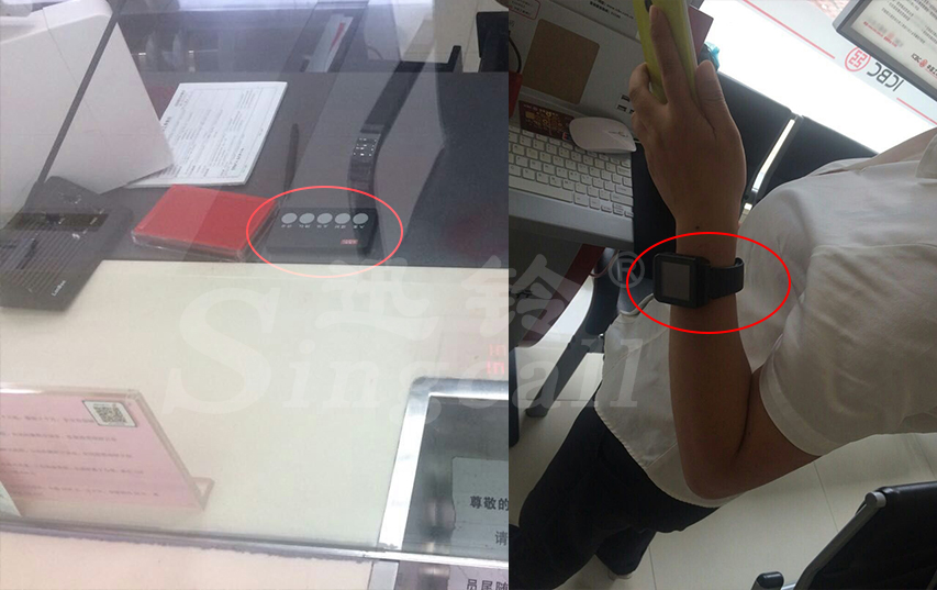 寧波工商銀行安裝了APE350銀行專用呼叫器和APE6800腕式移動接收主機(jī),用于銀行內(nèi)部員工的無線呼叫。銀行柜臺內(nèi)根據(jù)客戶業(yè)務(wù)量的多方面需求,用于銀行工作人員呼叫大堂、理財、主任、授權(quán)、保安等相應(yīng)工作人員。工作人員根據(jù)工作需求按下APE350的相應(yīng)按鍵后,被呼叫的大堂經(jīng)理、保安等相應(yīng)工作人員都可以通過隨身攜帶的APE6800手表接收主機(jī)以震動或鈴聲等方式接收到呼叫信息,及時有效地進(jìn)行相關(guān)的業(yè)務(wù)處理。