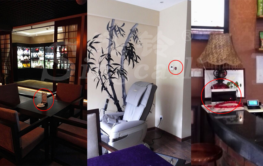 結(jié)合場所的不同區(qū)域的不同需要,兩江在餐飲區(qū)安裝了餐飲專用的臺卡式呼叫器APE950,該款呼叫器設有“點餐”“酒水”“服務”“結(jié)賬”“取消”五個功能按鍵,來店品嘗美食的客人如有需要即可針對各自不同的需要按不同的按鍵。棋牌茶水區(qū)安裝了時尚輕薄的“小飛碟”系列單鍵呼叫器APE700??腿嗽谛蓍e品茶期間如需服務只需輕輕一按呼叫器的按鍵即可發(fā)送呼叫信息。服務臺安裝了兩組三位顯示的大屏主機APE2600,此款主機配備彩色數(shù)碼管顯示,真人語音報號,超大容量存儲,并具有穩(wěn)定超長距離的信號接收功能。在餐飲區(qū)及休閑區(qū)的客人一按呼叫器,放置在服務臺的主機即可同步接收呼叫信息,服務人員就可及時的去進行有針對性的服務。