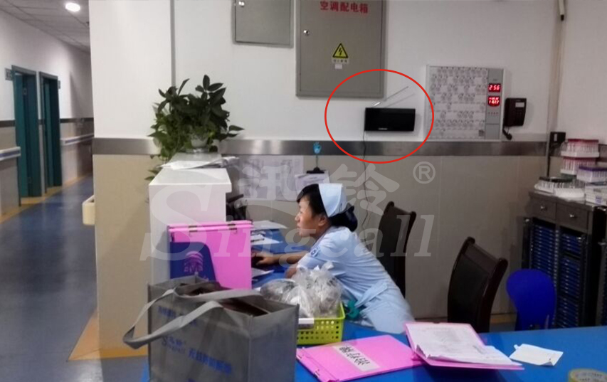 在本項目中,醫(yī)院采購了迅鈴專用帶手柄呼叫器APE200和信號接收力強、大屏顯示APE2000系列的主機,手柄的設計可以使不方便起身的病患更加方便的按到呼叫按鍵,同時也方便病人在夜間使用呼叫器。將呼叫器安裝在每個病床的床頭,這樣一來,病人出現(xiàn)身體不適或其他突發(fā)情況時,即使家屬不在身旁,只需伸手輕輕按一下呼叫器按鍵即可發(fā)送呼叫信息。接收主機安裝在護士站,病人一旦按下呼叫器,主機即可同步接收呼叫信息,準確顯示、播報呼叫的房間號床位號,提醒醫(yī)護人員及時的前去救治。
