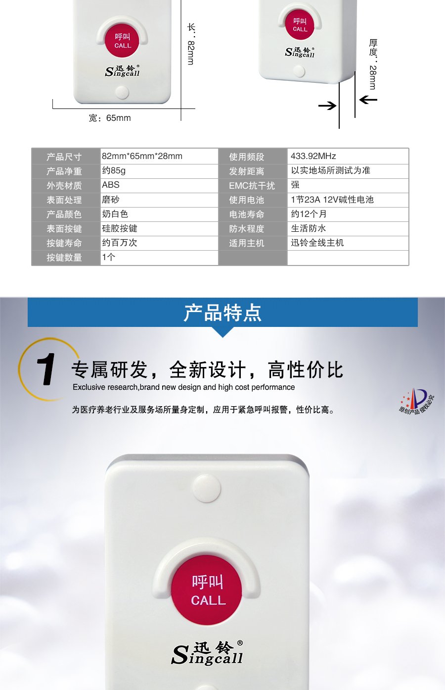 作用用途:用于醫(yī)療養(yǎng)老及服務(wù)場所的緊急報警的發(fā)射端