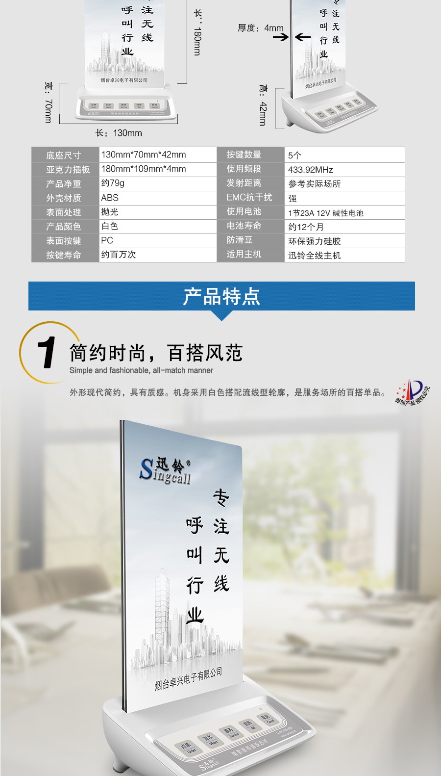 作用用途:餐廳等場(chǎng)所顧客呼叫服務(wù)人員的發(fā)射端