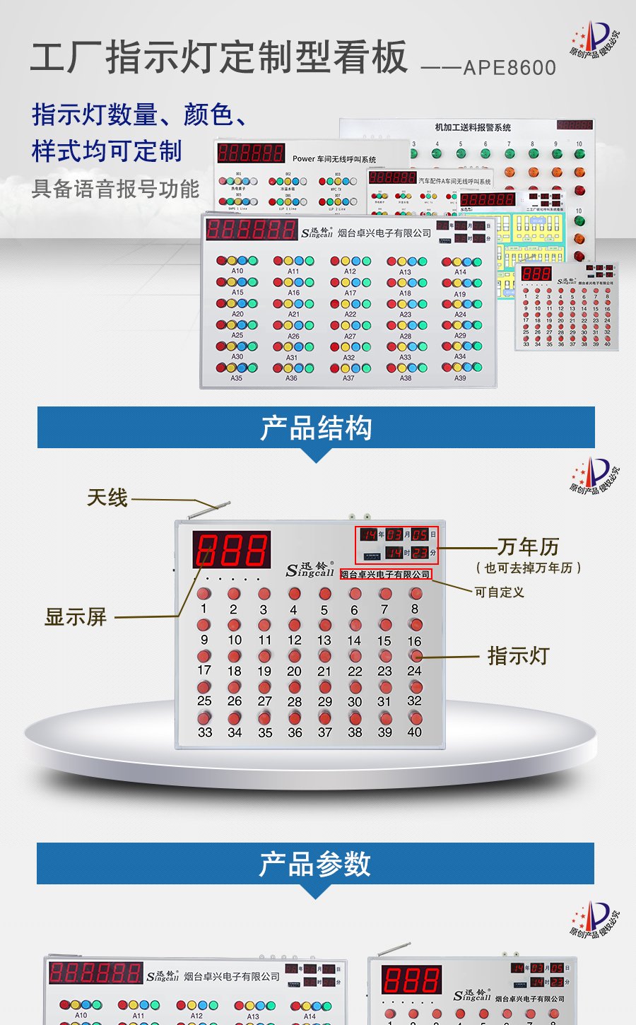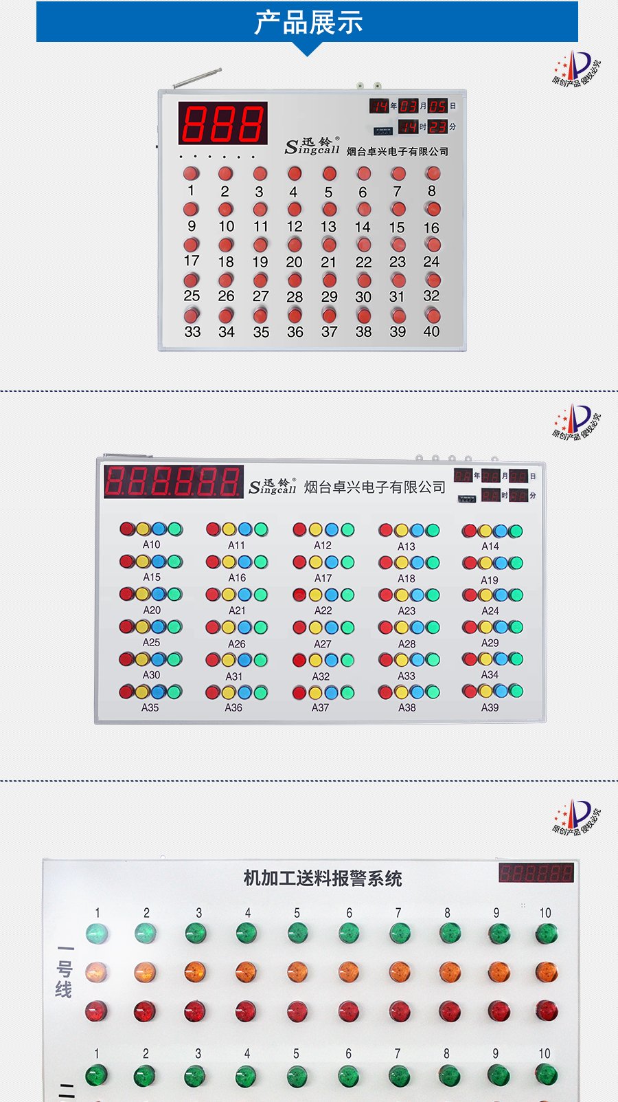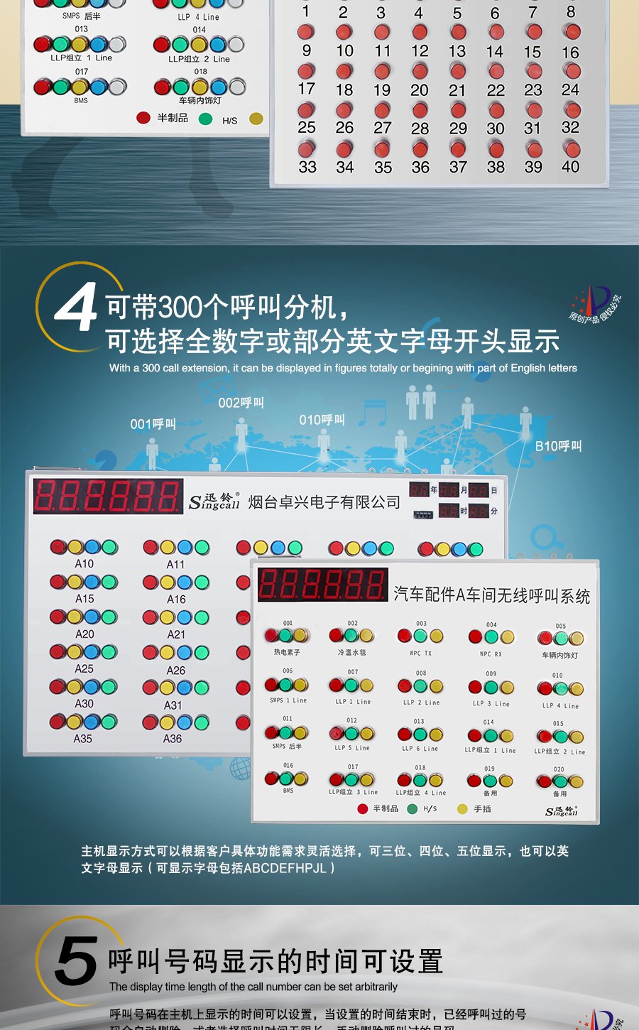 作用用途:接收車間流水線呼叫信息的帶燈顯示看板