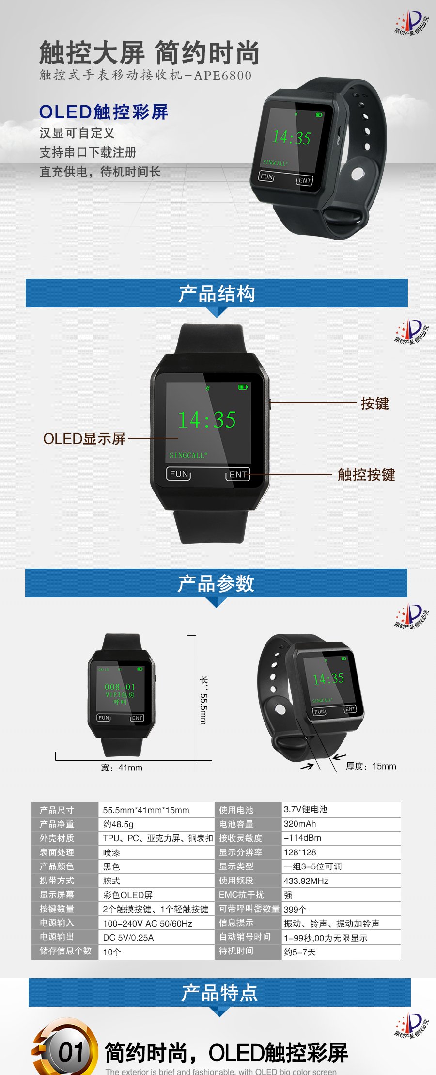 作用用途:被呼叫人員移動接收呼叫信息的接收端