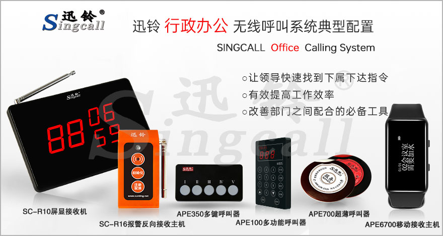 常用的產(chǎn)品推薦有屏顯接收主機SC-R10、報警反向接收主機SC-R16、漢顯移動接收機APE6700和多鍵呼叫器APE350、多功能呼叫器APE100、飛碟超薄呼叫器APE700。更多產(chǎn)品選擇請點擊“